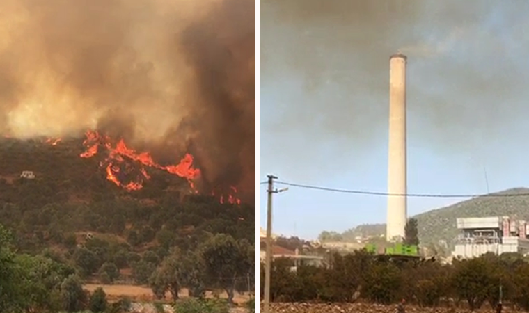 Muğla'nın Milas ilçesinde Kemerköy Termik Santrali'ne kadar yaklaşan yangın görüntülendi.Türkevleri Mahallesi'ndeki yangın, sarp ve kayalık arazide zaman zamanda yerleşim yeri yakınlarında etkisini sürdürüyor.