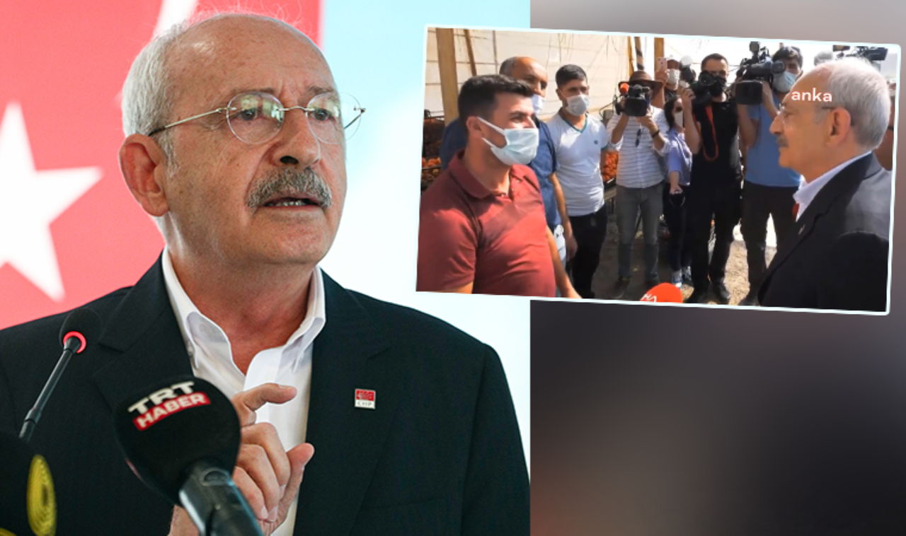 Kılıçdaroğlu'na derdini anlatan bir çiftçi, "2014'te karpuzu, soğanı, domatesi ne fiyata satmışsak bugün de öyle. Mazotun litresi 2 lira 800'dü şimdi 7 lira oldu. Gübre torbası 60-70 liraydı şimdi 300 liraya çıktı, her şey 4-5 kat yükselmiş, köylü 6-7 yıl önceki aynı yerinde" sözleriyle sitem etti.