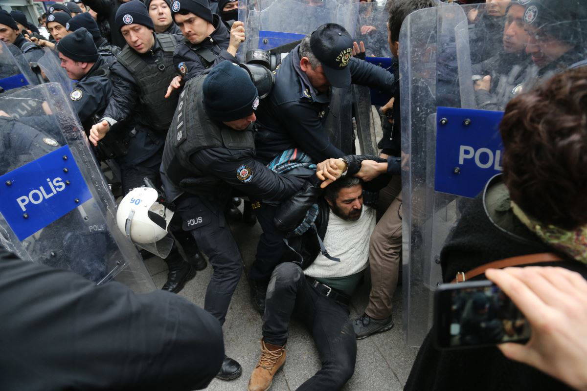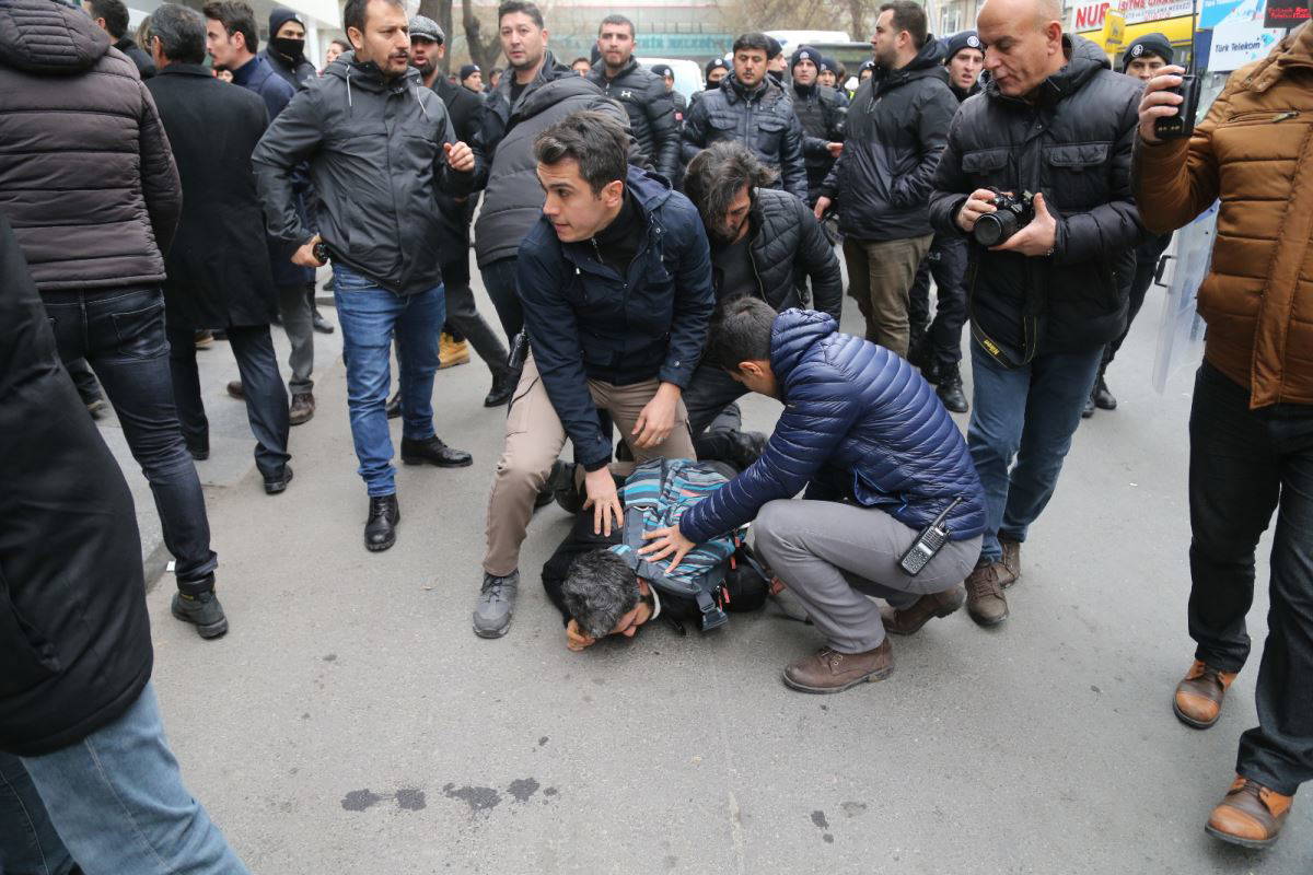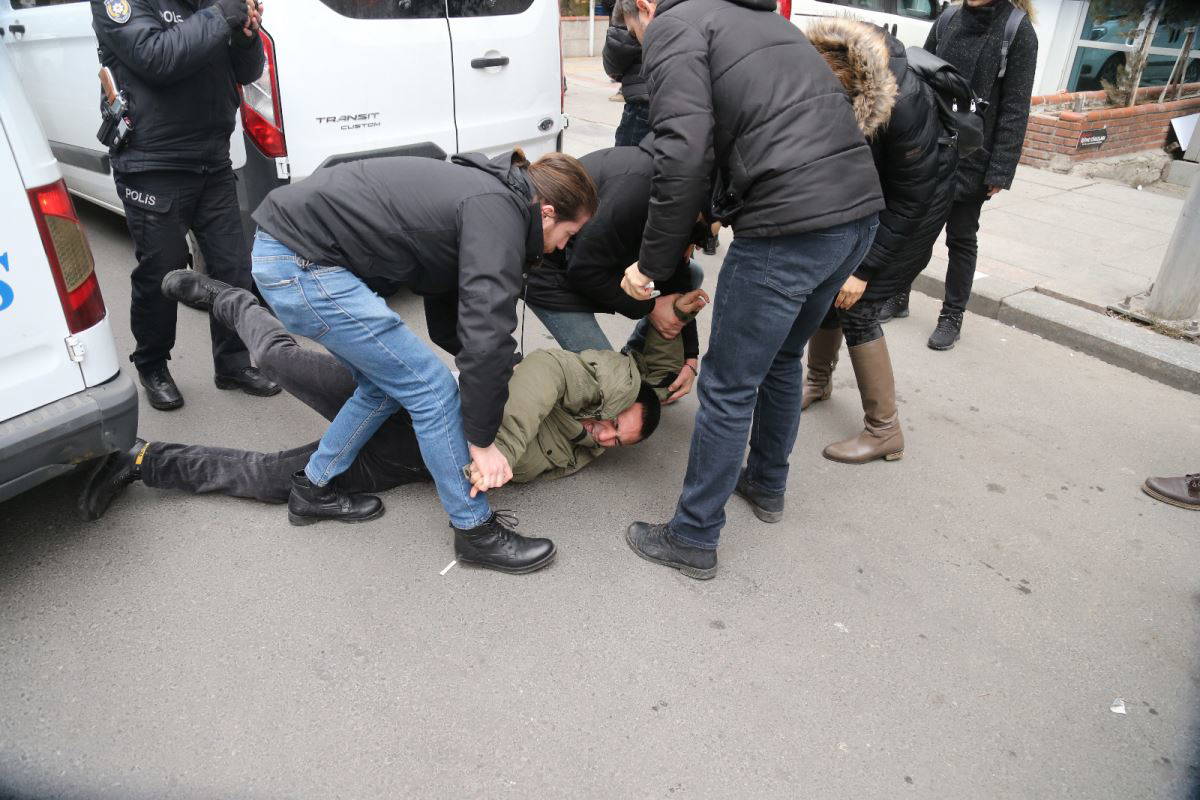 Ancak polis kısa sürede eyleme müdahale ederek 5 kişiyi yaka paça gözaltına aldı.