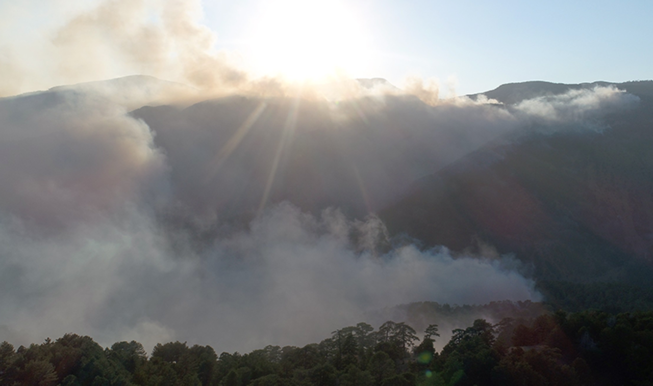 Geniş bir alanda etkili olan yangın Batı’da Dalaman sınırına, doğuda ise Denizli sınırına yaklaşırken, yoğun duman bulutu havadan görüntülendi.
