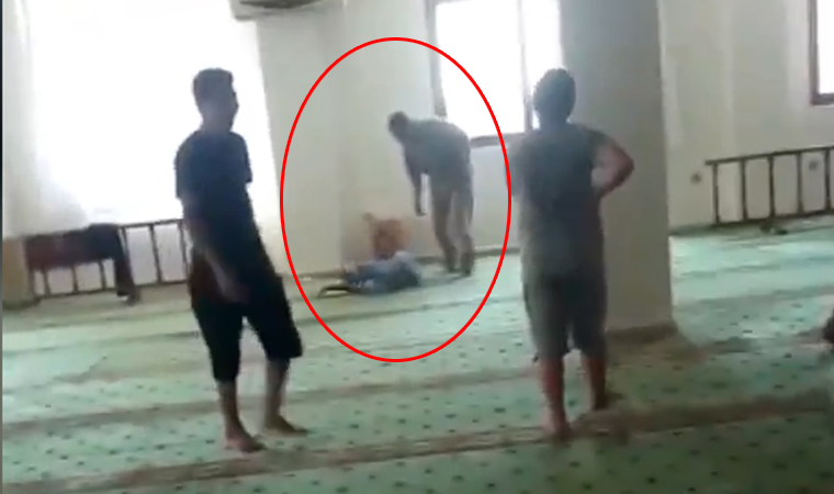 Hatay'ın Dörtyol ilçesindeki Yeni Yurt Merkez Camisi'nde cami imamı olduğu iddia edilen kişinin, Kuran kursuna katılan çocuğu arkadaşlarının gözü önünde feci şekilde darbettiği anlar kameraya yansıdı.
