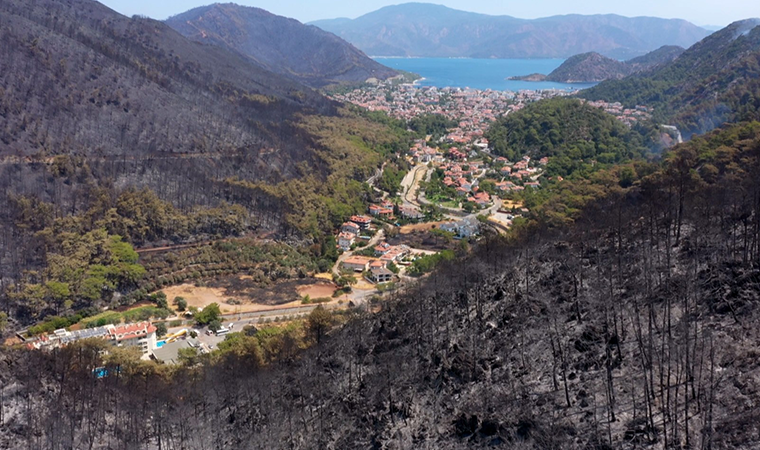 Marmaris İlçesine Bağlı İçmeler Mahallesinde günler süren müdahaleyle kontrol altına alınan yangının hasar verdiği bir bölgenin önceki ve sonraki durumu havadan drone ile görüntülendi. Yangın öncesi yemyeşil olan ilçe yangından sonra siyaha bürünmüş hali görenlerin yüreğini sızlatıyor. Türkiye’de orman yangınları ile mücadele devam ederken yangın sonrası felaketin boyutu gözler önüne seriliyor. İçmeler Mahallesinde ormanlık alan tamamen küle dönerken yerleşim yerlerine yakın bölgede bulunan ağaçların kurtarıldığı görülüyor. Öncesi ve sonrasında aynı yerden çekilen kareler ise yangının neden olduğu yıkımı net bir şekilde gösteriyor.