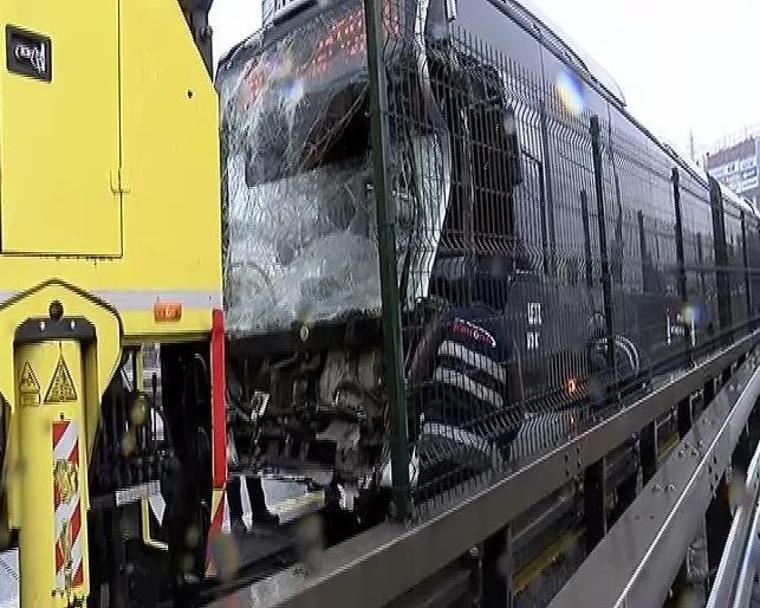 Haramidere'de meydana gelen metrobüs kazasında bazı yolcular hafif yaralandı. Kaza anı güvenlik kamerasına yansıdı.
