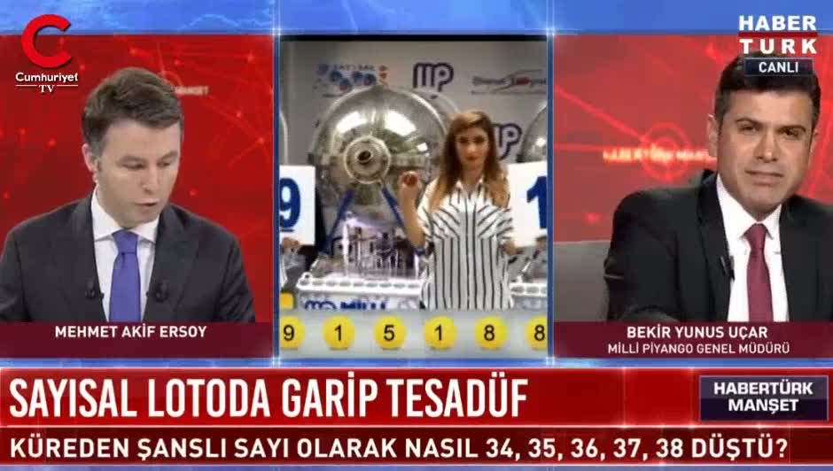 HaberTürk canlı yayınına katılan Milli Piyango Genel Müdürü Bekir Yunus Uçar yayın teklifinde bulundu. Loto çekilişi sonucunda 1-34-35-36-37-38 rakamlarını bilen talihliye 10.2 milyon liralık büyük ikramiye verilecekti. Fakat bu rakamları doğru bilen çıkmadığı için büyük ikramiye devretti. HaberTürk canlı yayınına katılan Milli Piyango Genel Müdürü şaibe iddilarına yanıt verdi. "Neden canlı yayınlanmıyor Milli Piyango çekilişi" sorusuna Uçar, "Habertürk kanalı olarak siz bu çekilişleri yayınlayacaksanız ben bütün yetkimi canlı yayınlamanız için kullanırım. Yeterki insanların aklındaki bu şüphe ortadan kalksın." ifadelerini kullandı.