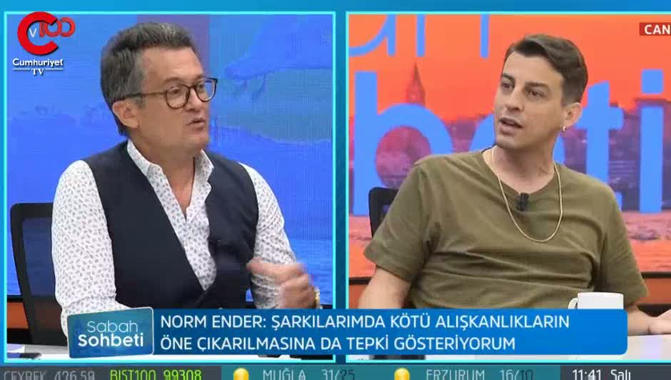 Sosyal medyada gündem olan ve yeni jenerasyon rapçilere ağır göndermede bulunduğu şarkısı "Mekanın Sahibi" ile müzik dünyasına dönüş yapan Norm Ender Tv 100'de yayınlanan Sabah Sohbeti programında şarkısında geçen “Beni dinler devrimci gençler, sizi yavşak lümpenler” sözüne açıklama getirdi. Cengiz Semercioğlu'nun dün TV 100'de canlı yayınlanan programına son günlerde adından sıkça söz edilen rapçi Norm Ender konuk oldu. Semercioğlu, Norm Ender'e yeni jenerasyon rapçileri eleştirdiği Mekanın Sahibi isimli şarkısındaki “Beni dinler devrimci gençler, sizi yavşak lümpenler” sözünü sordu. Norm Ender soruya “Sağ sol falan diye hiçbir siyasi yöne kendimi adayamam... Bu ülkenin devrimi Cumhuriyet’tir… Devrimcisi de Mustafa Kemal Atatürk’tür… Devrimci gençler derken bu ilkelere sahip çıkan gençlerden bahsediyorum…” ifadelerini kullanarak yanıt verdi.