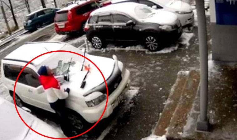 Rusya'da arabasının camını kardan temizleyen kişi, dokuzuncu kattan düşen levhayı sonda farketmesi üzerine ölümden kıl payı kurtuldu.