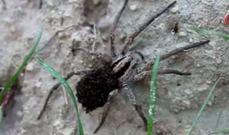 Erdemli ilçesine bağlı Karayakup Mahallesi Olukönü mevkisinde tarlada çalışanlar toprak ve çimlerin arasında emsallerinden yaklaşık 3 kat daha büyük bir örümceğin hareket ettiğini fark etti. İlk gördüklerinde korku yaşayan köylüler izlemeye devam ettikleri örümceğin üzerinde yüzlerce yavrusunu taşıdığını görünce büyük şaşkınlık yaşadı. Köylüler ilginç örümcek ve üzerinde taşıdığı yavruları cep telefonlarıyla kaydedip bir veteriner hekimden bilgi aldı. Örümceğin yavrularını çevreye adapte oluncaya kadar üzerinde taşıyacağını öğrenen köylüler örümceği doğaya bıraktı.