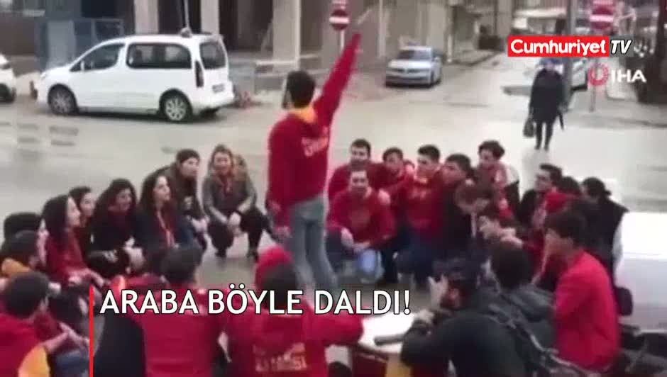 Otomobil, Galatasaraylı taraftarların arasına daldı!