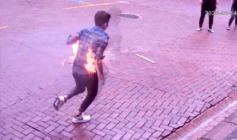 Patlama anı bir iş yerinin güvenlik kamerası tarafından saniye saniye kaydedildi. Görüntülerde bir anda alev topunun çıktığı ve park halinde olan bir minibüsün sarsıldığı görülüyor.