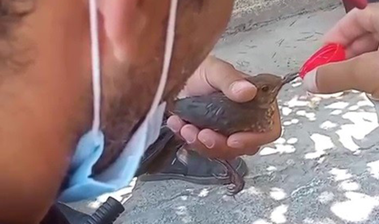 Pendik’te sıcaktan dolayı susuz kalarak bayılan bir sığırcık kuşuna temizlik görevlisi can suyu verdi. Sığırcık kuşu, Pendik Belediyesi’ne bağlı temizlik görevlisinin can suyuyla tekrar kendine geldi. O anlar vatandaşın cep telefonu kamerasınca kaydedildi.