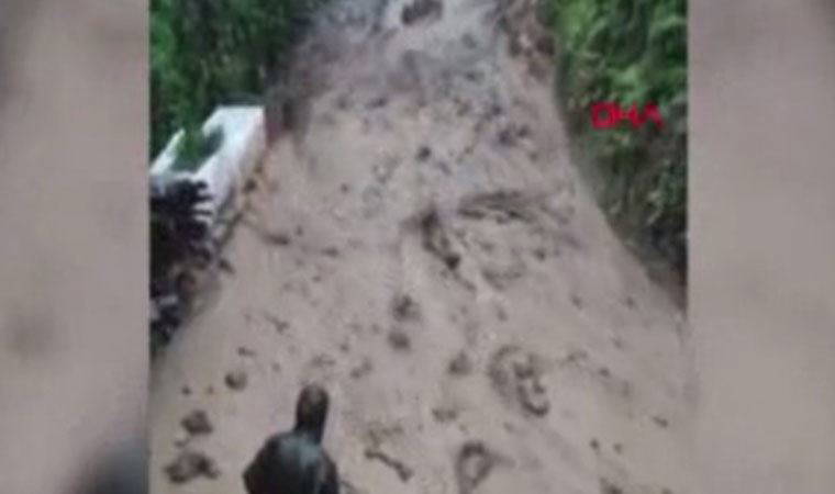 Rize'de etkili olan sağanak sele dönüştü, yollar kapandı. Kentte bir derenin saniyeler içerisinde taştığı anlar kameraya yansıdı.