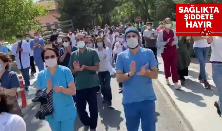 İstanbul'da Yedikule Göğüs Hastalıkları ve Göğüs Cerrahisi Eğitim ve Araştırma Hastanesi'nde çalışan sağlık emekçileri, Keçiören Eğitim ve Araştırma Hastanesi'nde hasta yakınları tarafından saldırıya maruz kalan meslektaşları için yürüyüş yaptılar.