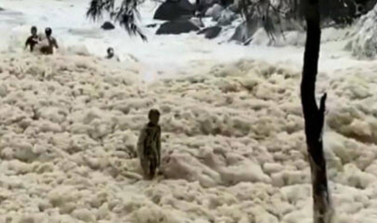 Avustralya'nın günaydoğusu hafta sonundan bu yana fırtınalı havanın etkisinde kalırken, sahiller ve plajlar deniz köpüğü ile doldu.