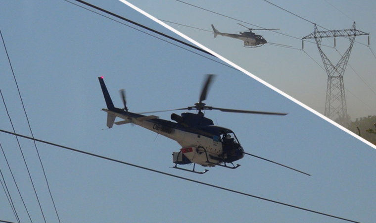Bir süre kayıt alan yurttaşlar, helikopterin elektrik hattı boyunca hareket etmeye başladığını gördü. Yerleşim yerine yaklaşan helikopterin yüksek gerilim hattı tellerine sıvı bir madde sıktığı görüldü. Türkiye Elektrik İletim Anonim Şirketi'ne (TEİAŞ) ait olduğu öğrenilen helikopterin, elektrik tellerinin bakım ve temizliğini gerçekleştirdiği öğrenildi.