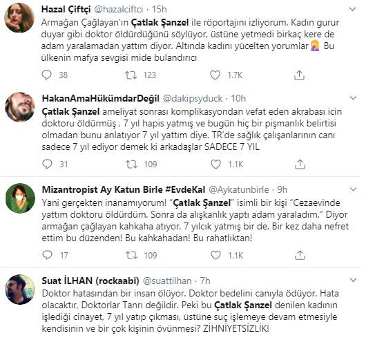 Şanzel Çetin'in bu ifadeleri sosyal medyada büyük tepki toplarken, Çetin'in sözlerine kahkaha atan Armağan Çağlayan da eleştiri oklarının hedefi oldu.
