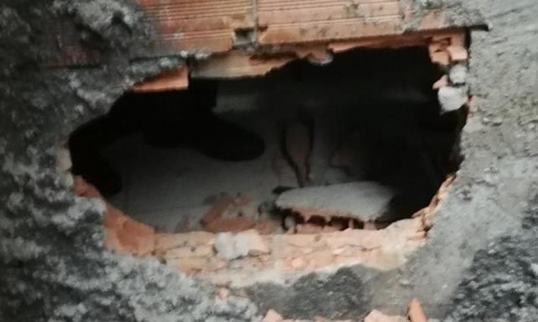 Sabah işyerini açan Özbey Yılmaz, gördüğü manzara karşısında büyük bir şaşkınlık yaşadı. Dükkan duvarının yaklaşık 50 santimetre çapında delindiğini fark eden Yılmaz, durumu polis ekiplerine bildirdi.