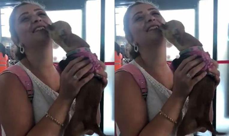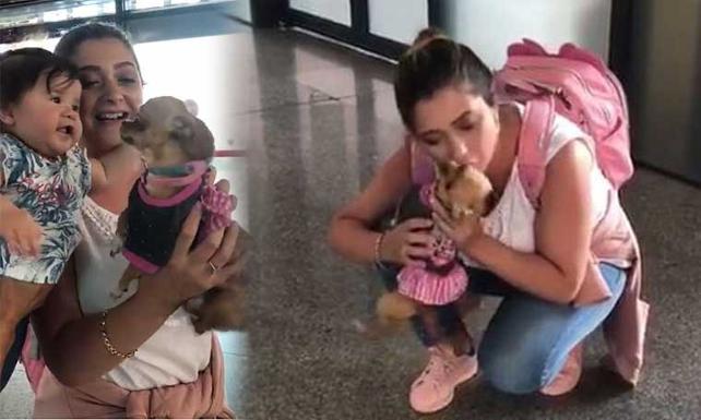 Chıhuahua (Çivava) cinsi 1,5 yaşındaki 'Barbie' adlı dişi köpeğin, 15 gün ayrı kaldığı sahipleriyle havalimanındaki buluşma anı, görenlerin içini ısıttı.