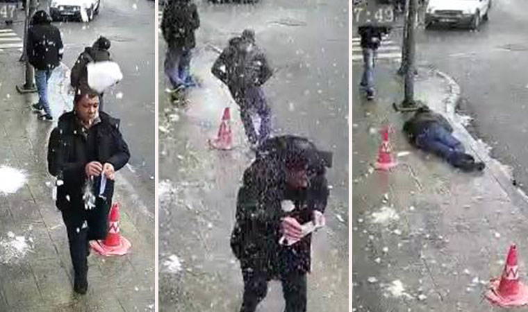 Olay anları güvenlik kameralarına saniye saniye yansıdı. Görüntülerde, kaldırımda birçok kişi yürürken kar ve buz kütlelerinin düştüğü, Allayarov'un kütlenin başına isabet etmesiyle yere yığıldığı görülüyor.