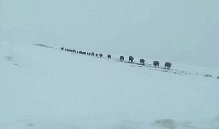 Sivas’ın Altınyayla ilçesinde vatandaşlarca 2 farklı domuz sürüsü görüntülendi. Gökmen Gölbaşı isimli vatandaş Altınyayla ilçesine gittiği sırada onlarca domuzdan oluşan sürü ile karşılaştı. Arabanın içerisinden domuz sürüsünü cep telefonu kamerasıyla görüntüleyen Gölbaşı şaşkınlığını gizleyemedi. Görüntülerde domuz sürüsünün nizami bir şekilde boş arazide koştukları görüldü. Öte yandan Ali Akcan’da dağlık alanla gezindiği sırada domuz sürüsü ile karşılaştı. Gölbaşı o anları cep telefonu kamerası ile görüntüledi. Ali Akcan “Altınyayla ilçesinin Deliilyas beldesinde dağlık bölgede küçük bir domuz sürüsüne rast geldim. Bu domuz sürüsü daha fazlaydı ama kurtların saldırısına uğradığı için azalmışlar. Bana da az bir sürü denk geldi. Zamanla üreyip çoğaldıkları için bayağı bir artmışlar’’ dedi.