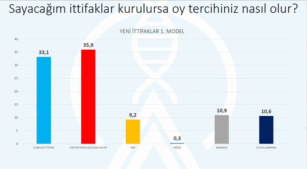 Millet İttifakı’na Saadet Partisi, Deva Partisi ve Gelecek Partisi’nin katılması halinde oy oranı ise yüzde 35’in üzerine çıkıyor.