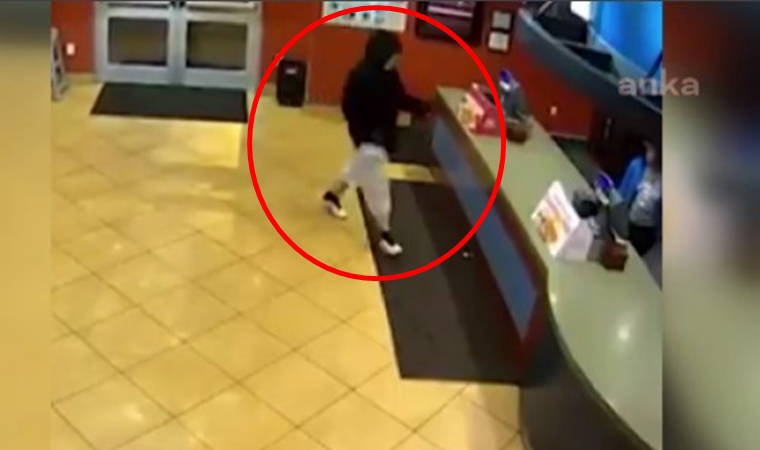 ABD’de bir restorana giren maskeli soyguncu, o sırada restoranda yemek yiyen polis çift tarafından engellendi. Soyguncunun kasaya doğru yöneldiğini gören polisler, silahlarını çekerek soyguncuyu yakalamaya çalıştı. Polislerin silahlarıyla kendisine doğru geldiğini gören soyguncu restorandan kaçarak uzaklaştı.