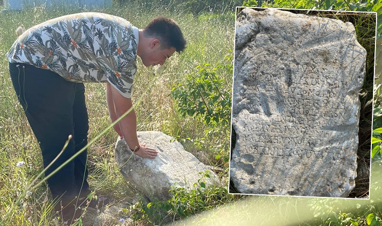 Tarlada kitabeyi bulan Oğuz Taflan, “Çok şaşırdım. Tarihi eser olduğunu anladım. Üzerinde yabancı isimler yazıyordu. Yetkililere haber verdim” dedi.
