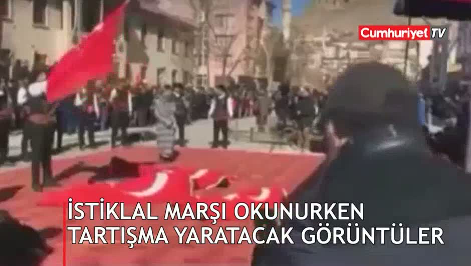 “Programda tertiplenen Bayburt'un Düşman İşgalinden Kurtuluşunun canlandırıldığı tiyatro gösterisinde kurtuluş mücadelesini yansıtan sahnelerin içinde spontane bir şekilde fonda İstiklal Marşı'nın bir kısmının çalındığı, devamında sala okunduğu, ortama diğer seslerin de karıştığı bir sahne sergilenmiş ve tiyatro sahne akış planına göre devam etmiştir.”