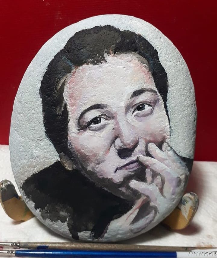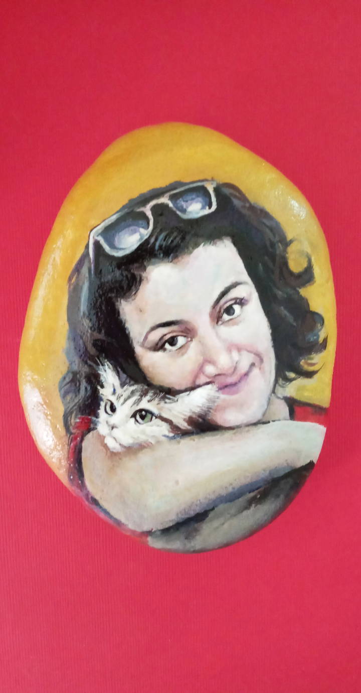 Akdeniz Üniversitesi Güzel Sanatlar Fakültesi Resim Bölümü'nde yüksek lisans eğitimini tamamlayan Ressam Hacer Doğan, akademik kariyerinin ortasında geçirdiği bisiklet kazası sonrası, sahilden topladığı taşlara yaptığı portrelerle sanatına tutundu.
