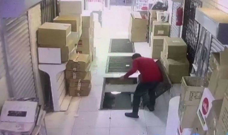 İş hanında bulunan bir dükkanda çalışan 19 yaşındaki Abdullah Mut, telefonuna bakarak yürüdüğü sırada mal indirmek için açılan ızgaranın içine düştü. Alt katta kolilerin üzerine düşen Mut, kazayı şans eseri yara almadan atlattı. İlginç olay güvenlik kamerasına yansıdı.
