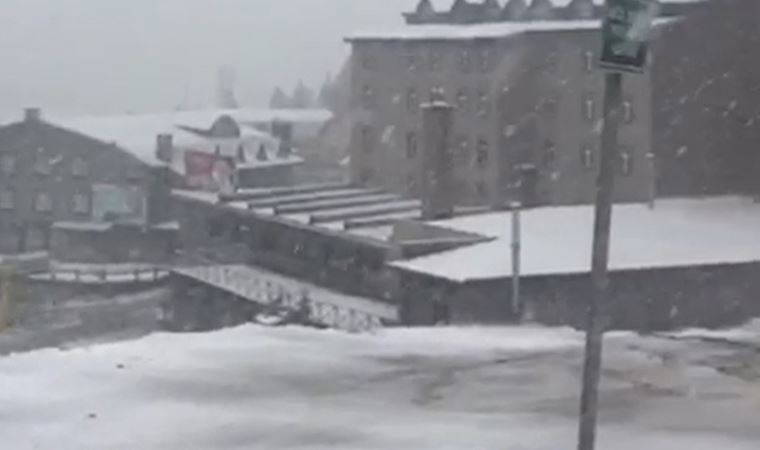 Kış turizminin önemli merkezlerinden Uludağ'da, hava sıcaklığının mevsim normallerinin altına düşmesiyle kar yağışı başladı.