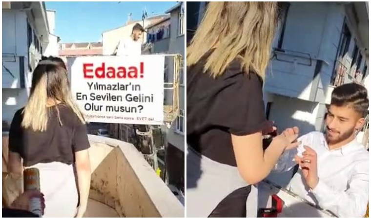 Bir genç, kız arkadaşı için ilginç bir evlenme teklifinde bulundu. Gerekli izinleri aldıktan sonra kiraladığı vincin sepetine binen genç, kız arkadaşının yaşadığı binanın 4. katının balkonuna kadar yükseldi. Bu esnada arkadaşlarıyla hiçbir şeyden habersiz ev içerisinde bulunan kız ise, arkadaşlarının çağrısı ile balkona gelince hayatının sürprizini yaşadı.