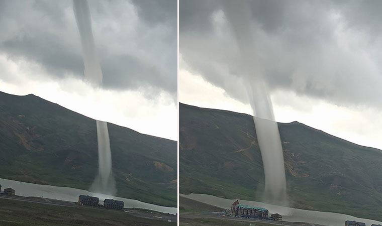 Kayseri'de Erciyes Dağı'nın bulunduğu bölgede çıkan hortum görenleri şaşkına çevirdi.