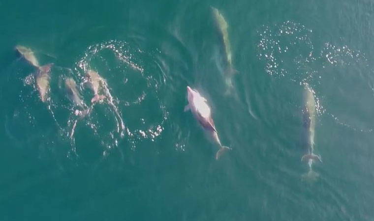 Drone ile takibe alınan yunuslar bir süre deniz yüzeyinde keyif sürdürdükten sonra bir anda gözlerden kayboldular. Denizin dibine doğru gözlerden kaybolan yunus balıklarından geriye muhteşem görüntüler kaldı.