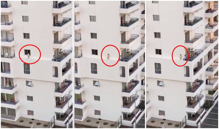 Minik çocuğu binanın kenarında yürürken yansıtan video yürekleri ağızlara getirdi. Görüntüler radyo sunucu Jeremy Dixon tarafından Twitter’da paylaşıldı.