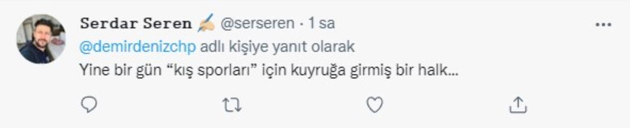 Cumhuriyet Halk Partisi Parti Meclisi Üyesi Deniz Demir'in Twitter hesabından paylaştığı videoda karlı ve soğuk havaya rağmen yurttaşların Halk Ekmek büfesinin önünde kuyruğa girdiği görülüyor.