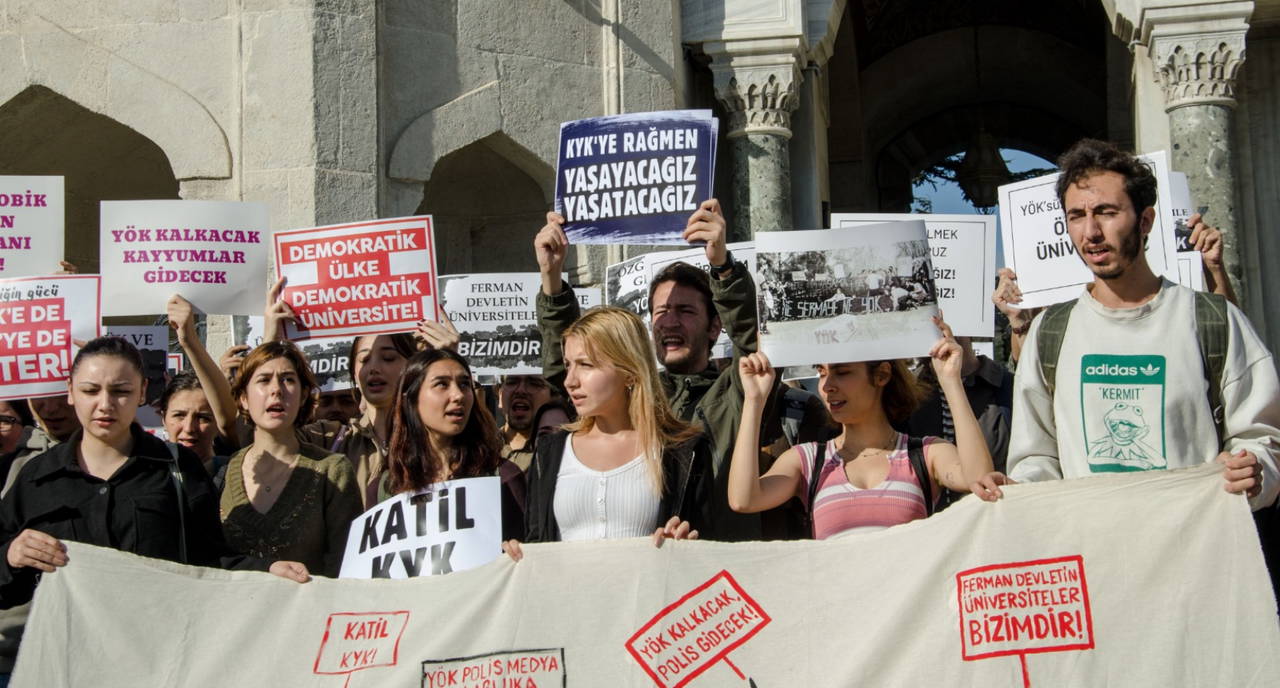 İstanbul Üniversitesi Beyazıt Kampüsü önünde bir araya gelen üniversite öğrencileri, dün Yükseköğretim Kurumu’nu (YÖK) kuruluşunun 42’inci yıldönümünde protesto etti.