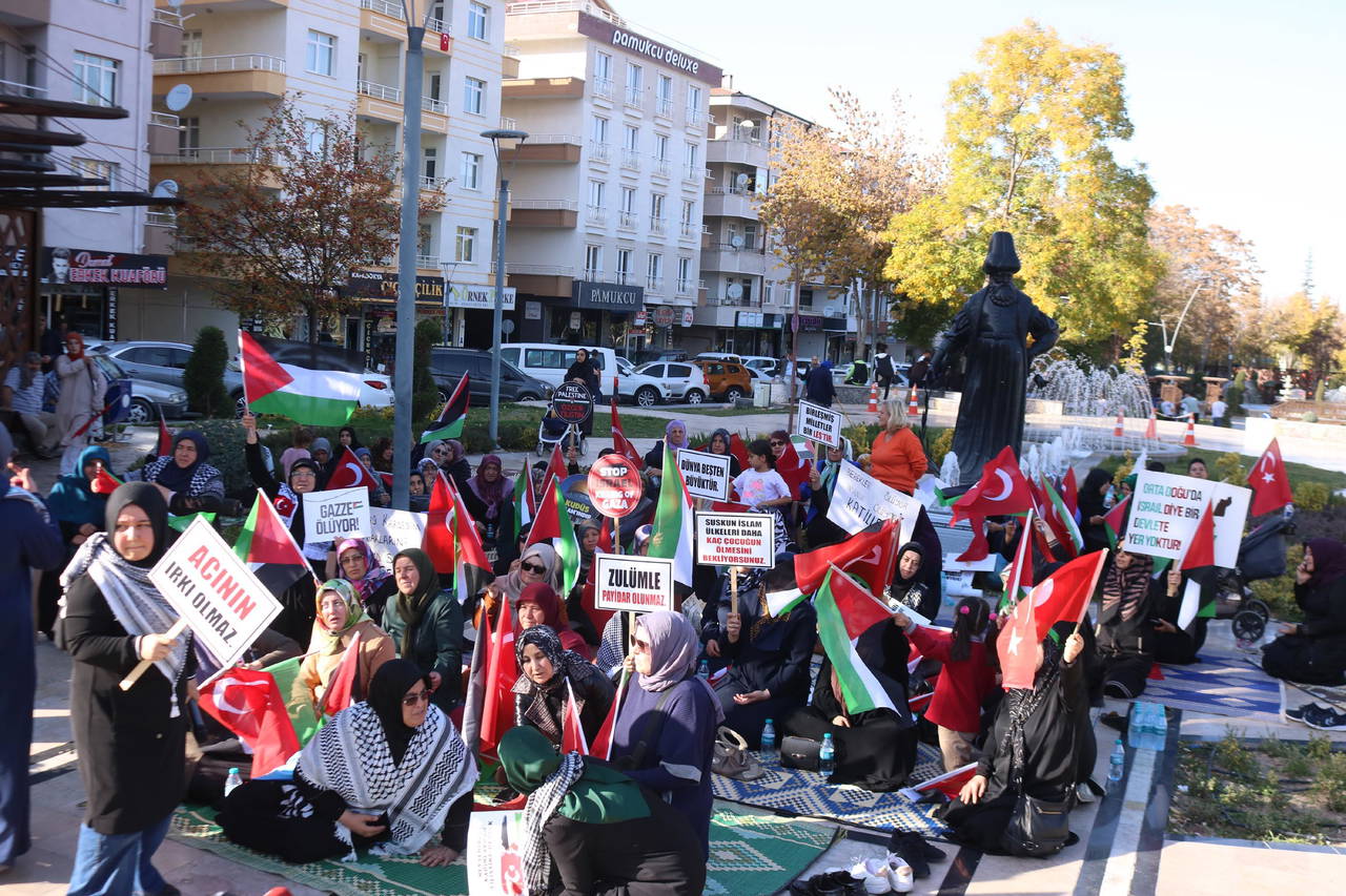 Çeşitli sivil toplum kuruluşlarının kadın temsilcileri, Necdet Ersan Parkı'nda oturma eylemi için bir araya geldi. Çok sayıda kadın, oturarak İsrail’i protesto etti.