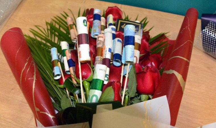 "İkinci bir müşterimiz de sosyal medyadan ulaştı ve sevgilisine üzerinde euro'ların olduğu bir buklet hediye etmek istediğini söyledi. Biz de kendisinin talebi doğrultusunda yaklaşık 1000 euro kullandığımız bir buket hazırladık. Müşterimizin talebi doğrultusunda bukette kırmızı güller kullandık ve 15 bin liraya satışını gerçekleştirdik."