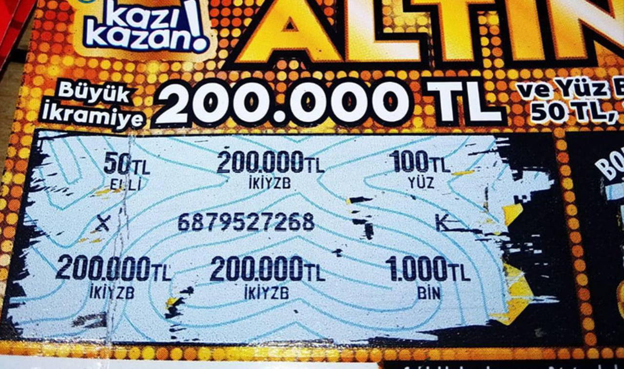 Kocaeli Ömerağa Mahallesi İstiklal Caddesi üzerindeki gezici bayinin önünden geçen bir kadın, çocuğunun ısrarıyla 'Altın' adlı 5 TL'lik kazı kazan aldı. Kazıdığında 200 TL kazandığını belirten kadın, gezici bayi Süreyya Bulut'tan ikramiyesini istedi. Bulut ise kadına yanıldığını ve 200 bin TL kazandığını söyledi. Büyük şaşkınlık yaşayan kadın, gezici bayiye bir miktar para verip ikramiyesini almaya gitti.