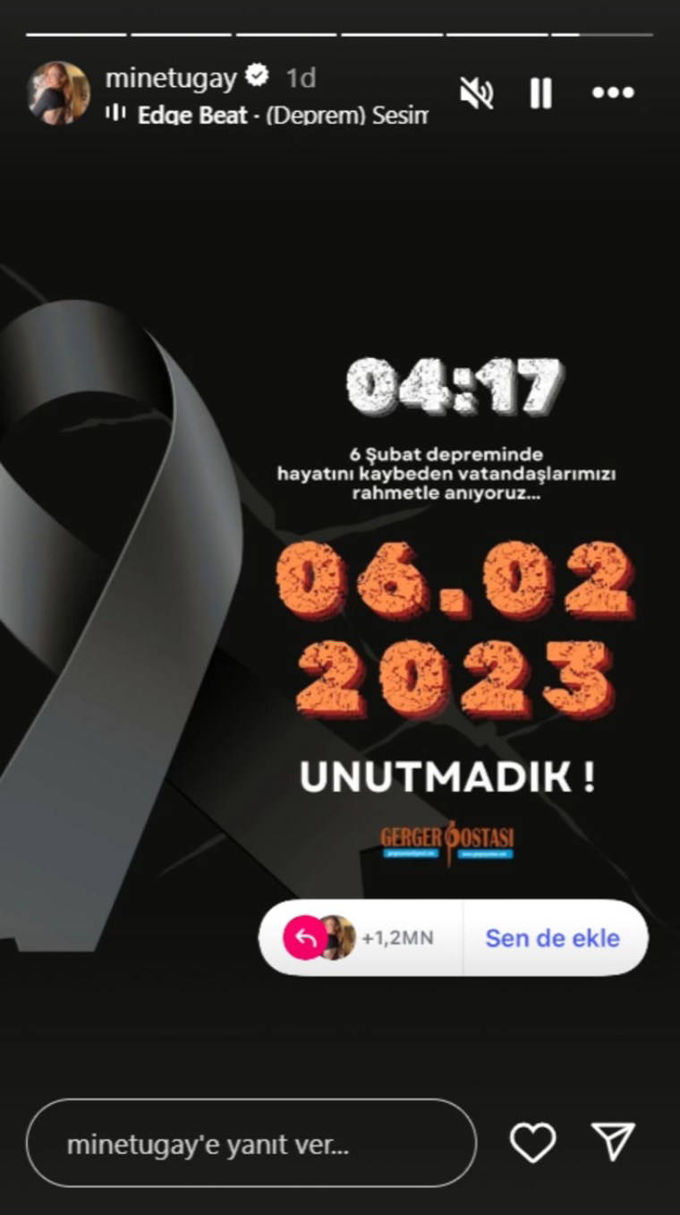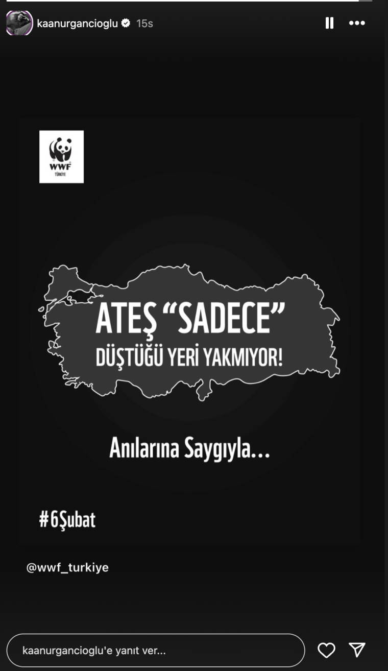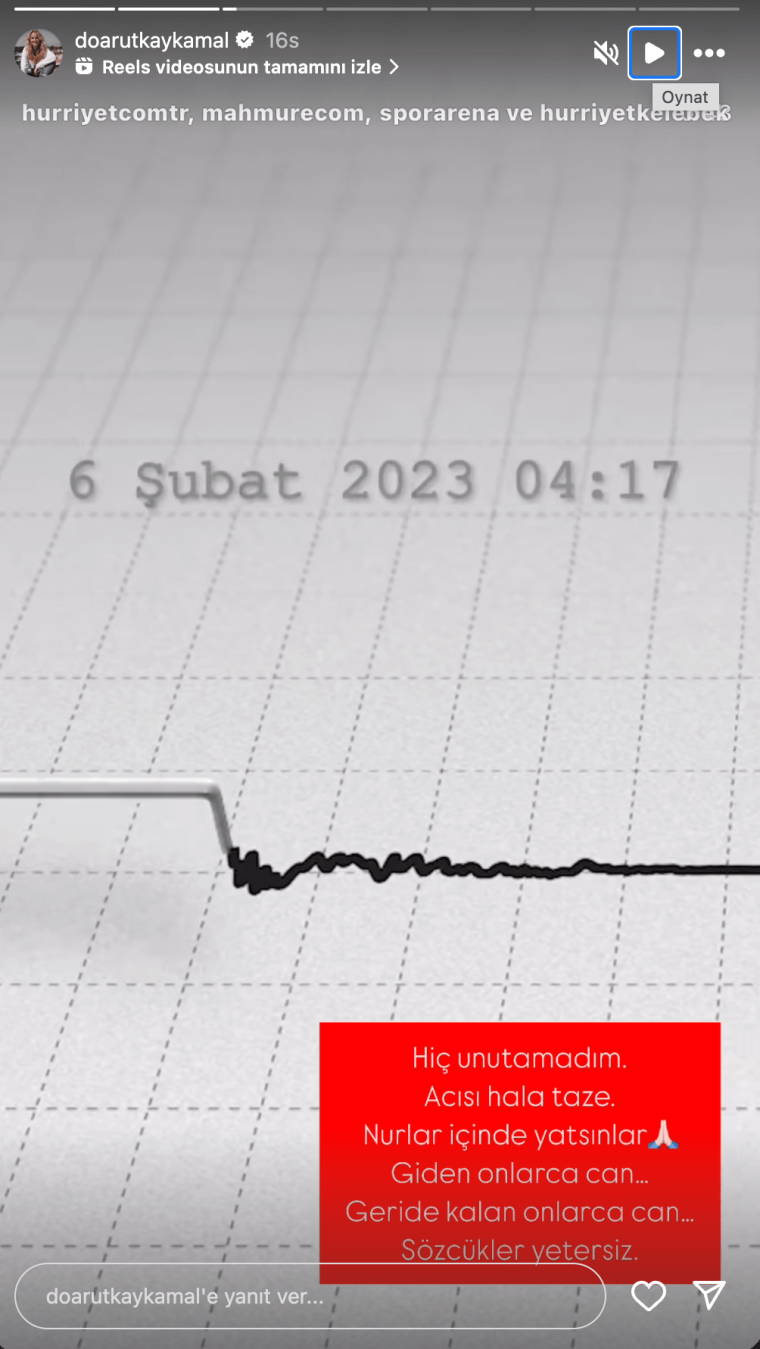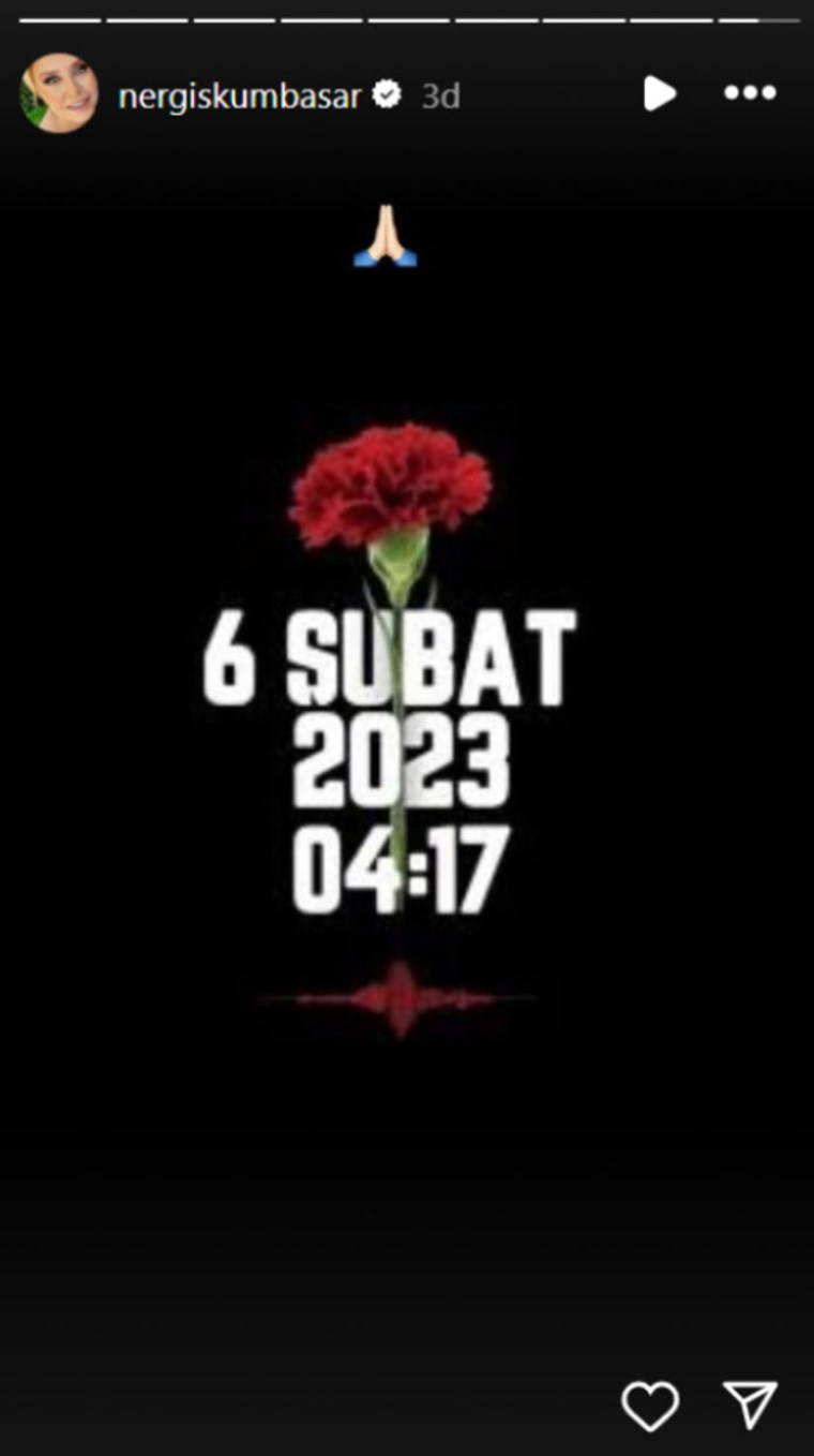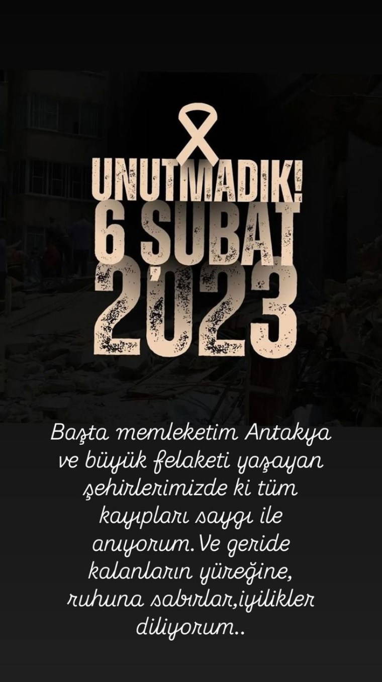 Büşra Pekin: 6 Şubat depreminde kaybettiğimiz bütün canlara Allah'tan rahmet diliyorum.