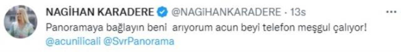 Twitter hesabından paylaşım yapan Karadere, "Panoramaya bağlayın beni. Arıyorum Acun Bey'i telefon meşgul çalıyor" dedi.