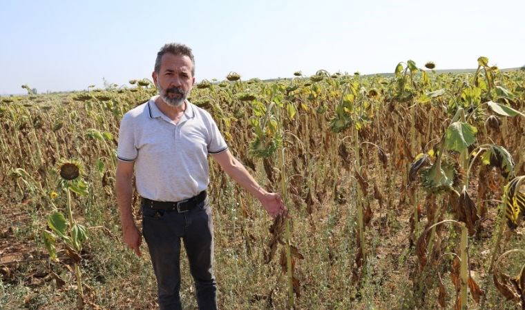Haziran ayında ayçiçeklerinin içinin olgunlaşma dönemi olduğunu aktaran Ziraat Mühendisi Barış Kurtaran, “Geçtiğimiz hafta yaşanan aşırı sıcaklar nedeni ile ayçiçekleri neredeyse 1 ay erken kurudu. Erken kuruması verim kaybına neden olacak. Baharda aldığı yağmurları baz aldığımızda 300-400 kilo verim vermesi gerekirken şuan sıcaklar sonrası 250 kiloya kadar verim kaybı olması söz konusu. Bu yaşanan sıcaklar ciddi bir verim kaybı yaşatacak. Bu kuraklık ve sıcaklıkla 200-250 kilo verimin üzerine çıkması pek mümkün görünmüyor. Havanın çok ısınmasından kaynaklı arazide buharlaşma ani olduğu için çatlaklar oluştu. Ayçiçek kökleri ile toprağın bağını koparmış oldu. Burada mücadele yapabilecek hiç bir şey yok. Ayçiçeklerinin boynunun bükülmesi bile kuraklıkla alakalı. Ben 10 yıldır ayçiçek ekimi yapıyorum böyle bir zararı bugüne kadar görmedim” dedi.