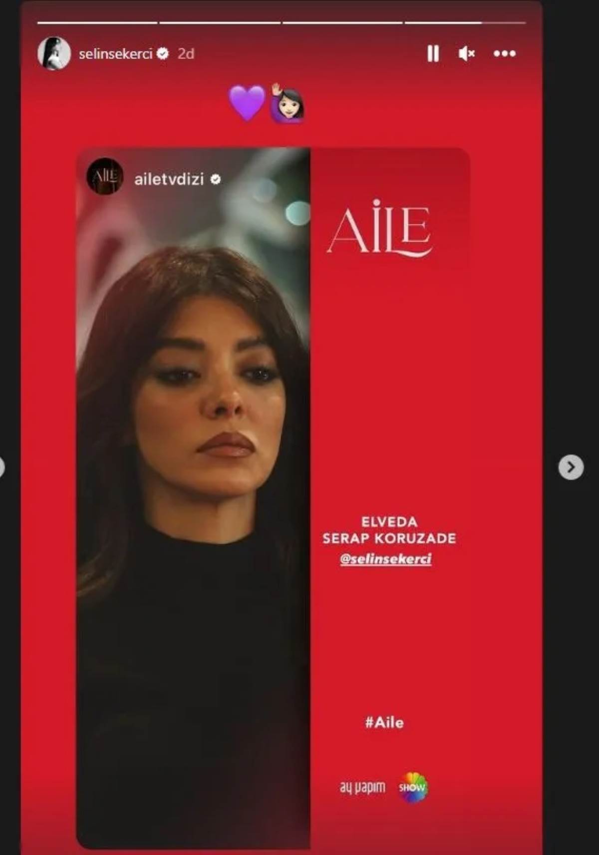 Sevilen oyuncu Selin Şekerci Instagram hesabından yaptığı paylaşımda şunları kaydetti:
