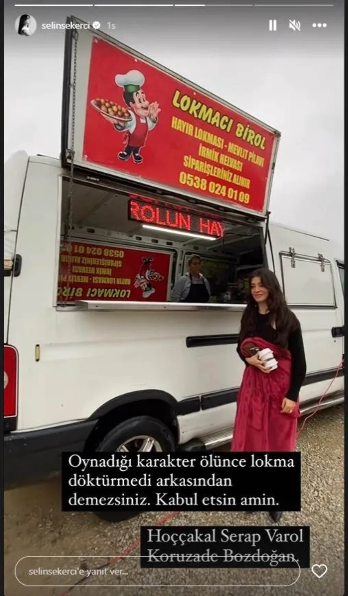 Selin Şekerci bir başka paylaşımında ise, dizide ölen karakteri avukat Serap Varol için lokma döküldüğünü söyleyerek şunları kaydetti: