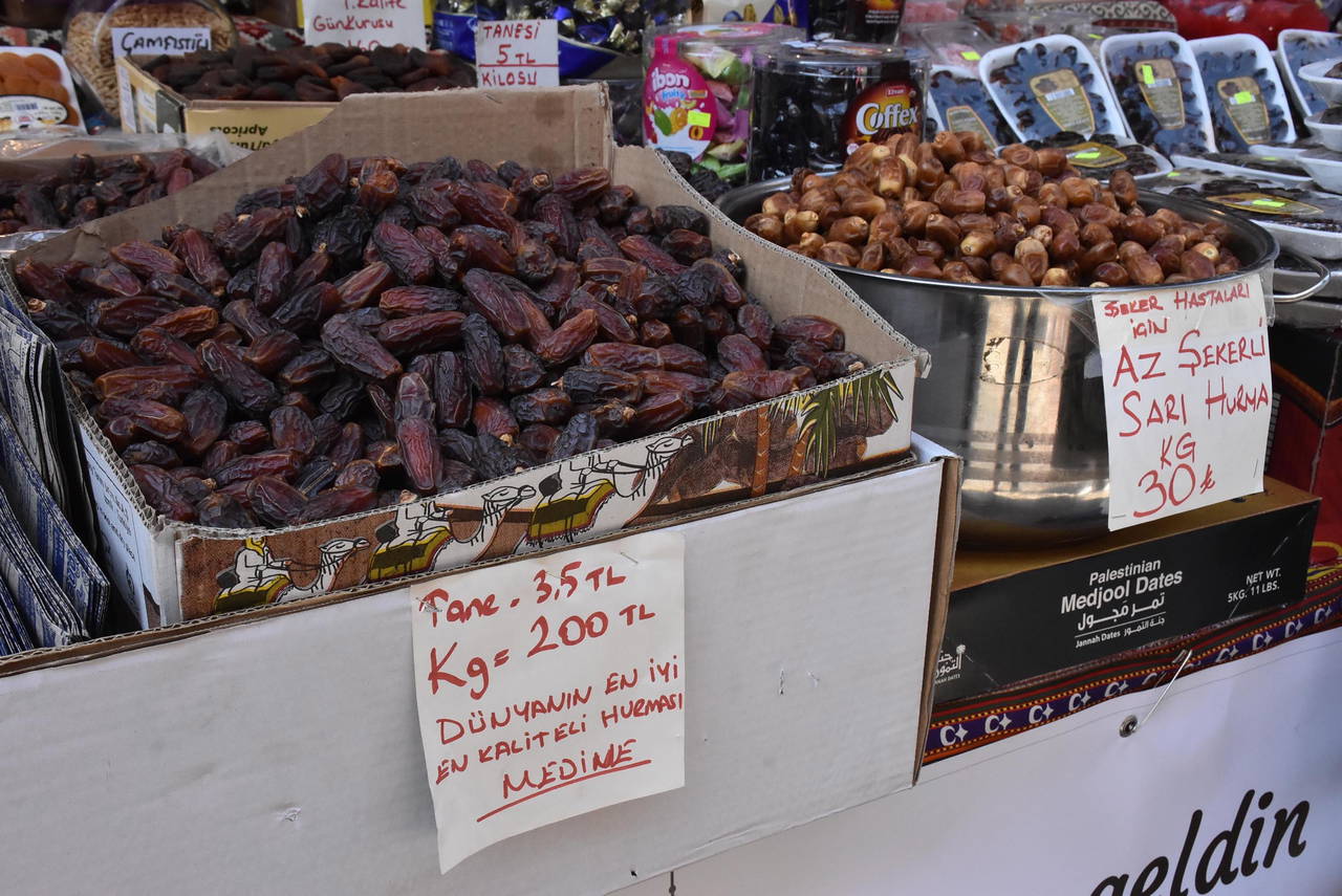 Ramazan ayı öncesinde İran, Tunus, Kudüs ve Medine hurmalarının tezgahlarda yerini almaya başladığını belirten Gönen, "10 liradan 200 liraya kadar hurma var. Hazırlığımızı yaptık. Önümüzdeki hafta çeşitler daha da artacak. Medine'nin birinci sınıf hurmasının kilosu 200 lira. Medine ikinci sınıf hurmanın kilosu 140 lira. Kudüs birinci sınıf hurması 220 lira. Şeker hastalarının daha fazla tercih ettiği Irak hurması az şekerlidir. Bunun da kilosu 30 lira. Tunus hurması 20 lira. Yumuşak hurmalar da çocuklar tarafından rahatlıkla tüketilebilir" dedi.