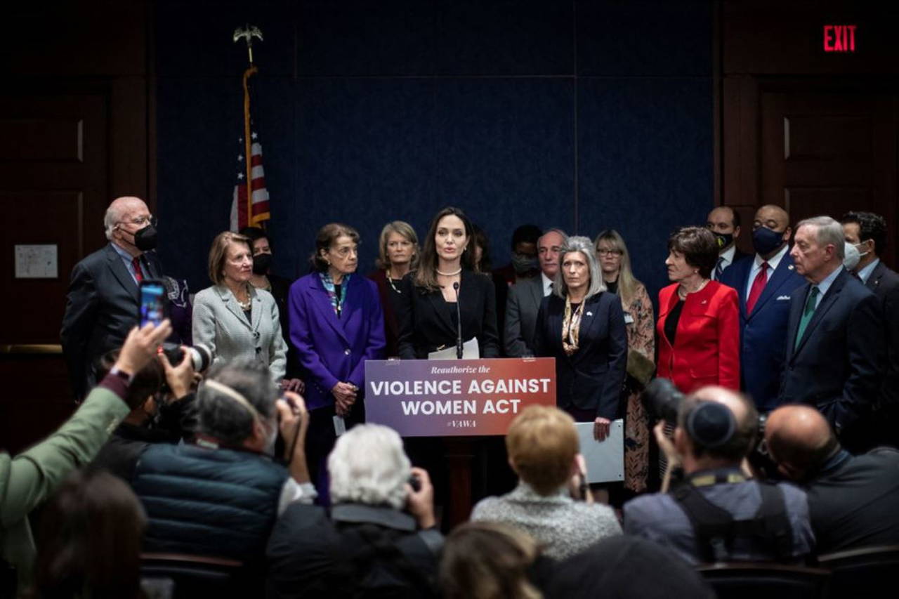 NTV'de yer alan habere göre; aynı zamanda Birleşmiş Milletler Yüksek Komiserliği Özel Temsilcisi (UNHCR) olan 46 yaşındaki ünlü oyuncu, senatoyu kadına yönelik şiddet yasasını yenilemeye davet etti.