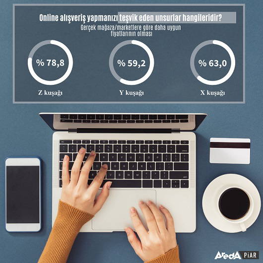 Z kuşağı yüzde 81,4, Y kuşağı yüzde 57,9 ve X kuşağı yüzde 58 oranla moda, giyim, ayakkabı ürünleri satın alırken online alışveriş imkanlarından yararlanıyor. Bu ürünlerin dışında en çok kitap, film, müzik gibi hobi ürünleri, elektronik ürünler ve tekstil ürünleri online alışverişlerde tercih ediliyor.