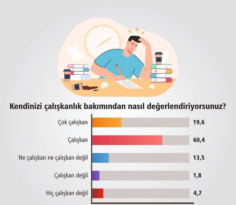 Araştırma sonucunda, Türkiye’deki insanların ne kadar çalışkan olduğu ve kendilerini çalışkanlık bakımından nasıl gördükleri incelendi.