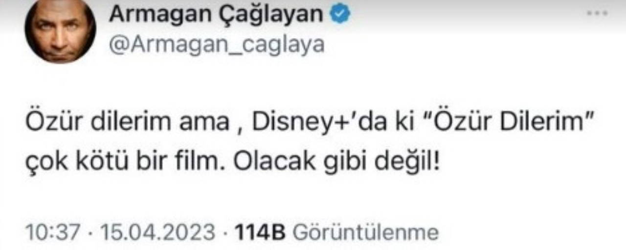 Daha önce birlikte çeşitli projelerde yer alan İbrahim Büyükak, Oğuzhan Koç ve Gizem Karaca'nın başrolünü paylaştığı "Özür Dilerim" filmi, Disney Plus'ta yayınlanmaya başladı. Filmi izleyen Armağan Çağlayan ise yorumuyla dikkat çekti.
