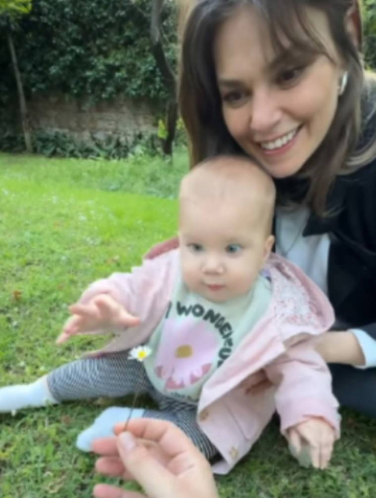 Doğa içerisinde bebeği ve eşi Aslı Enver ile birlikte vakit geçirirken Berkin Gökbudak, kızı Elay'a papatya uzatmıştı.
